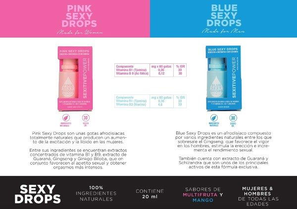Sexy Drops es un suplemento diseñado para potenciar la libido, aumentando la energía y multiplicando el vigor. Con una pequeña dosis de entre 10 y 14 gotas diluidas en 200ml de tu bebida favorita, experimentarás una excitación extraordinaria y un aumento en el deseo sexual. Su fórmula exclusiva contiene Ginseng, conocido por favorecer el vigor y estimular la erección, además de Guaraná y Schizandra, que optimizan el rendimiento sexual, ofreciendo nuevas sensaciones y un mayor apetito sexual con tu pareja.