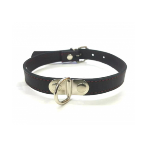 Diseñado en cuero sintético reforzado, se ajusta cómodamente al cuello y cuenta con una argolla metálica frontal, perfecta para sujetar cadenas, correas o simplemente lucir con estilo.