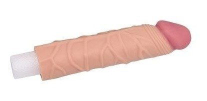 Sumá centímetros y textura fácilmente con esta funda extensora de acabado realista. Reproduce la forma de un pene erecto con glande definido y venas marcadas para un efecto visual más excitante. Al colocarla, aporta mayor longitud y grosor, ideal para quienes quieren intensificar la penetración y sorprender con un tamaño más imponente.