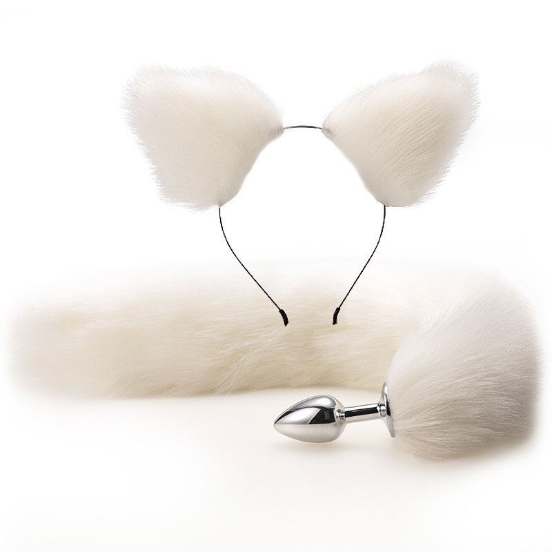 Cola de peluche con plug metálico y orejitas